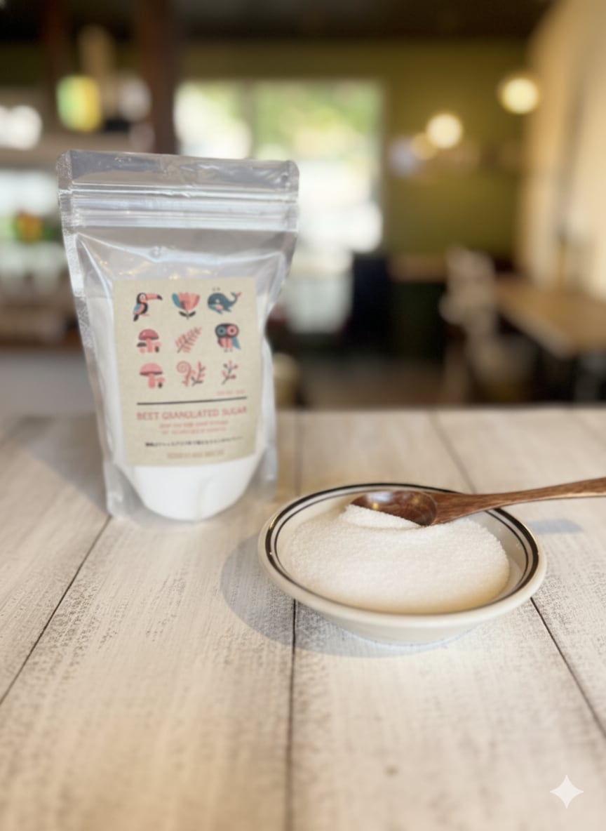 北海道の大地で育った「ビート(てん菜)」のみを原材料とした、純国産の高純度なグラニュー糖です。大容量の業務用パッケージから、ご家庭で使いやすい分量に丁寧に小分けしてお届けします。