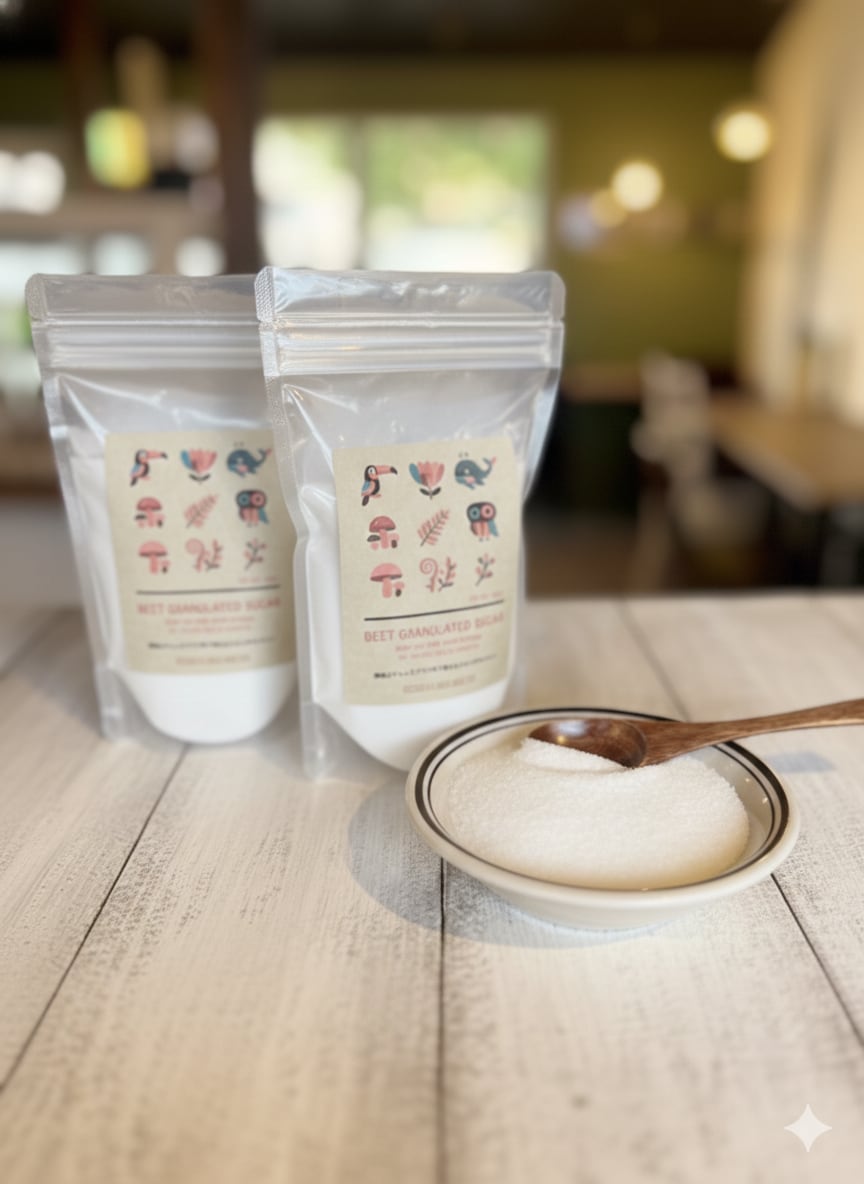 北海道の大地で育った「ビート(てん菜)」のみを原材料とした、純国産の高純度なグラニュー糖です。大容量の業務用パッケージから、ご家庭で使いやすい分量に丁寧に小分けしてお届けします。