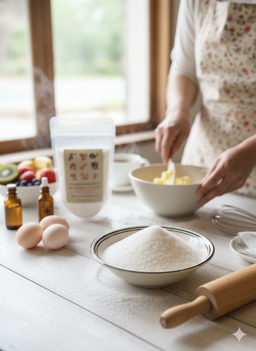 クセのない淡泊な甘味:さらさらとした白色の結晶で、匂いやクセがなく、素材本来の風味を最大限に引き立てます。
