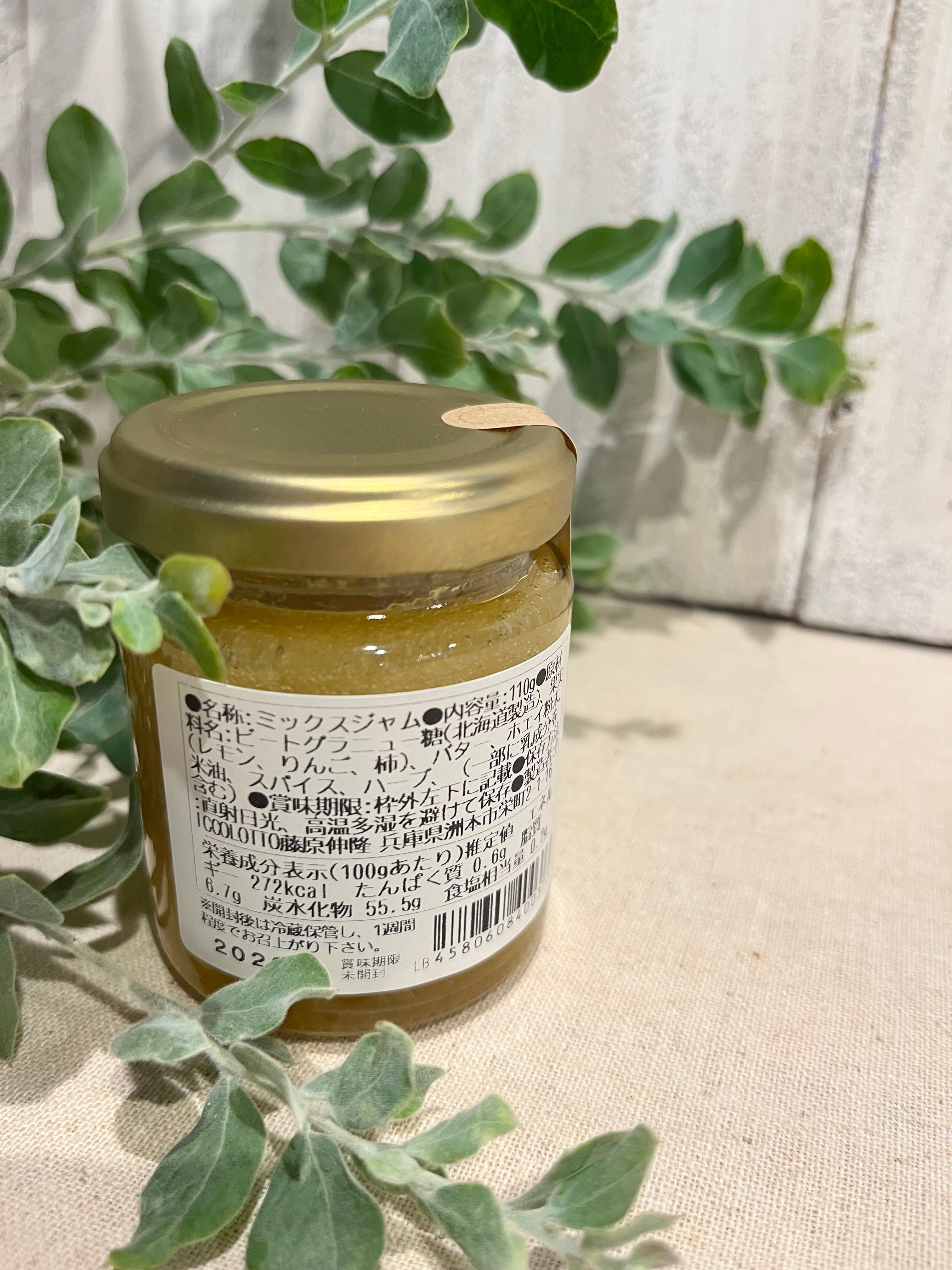 ビートグラニュー糖(北海道製造)、果実(レモン、りんご、柿)、バター、ホエイ粉末、米油、(一部に乳成分を含む)、ハーブ、スパイス